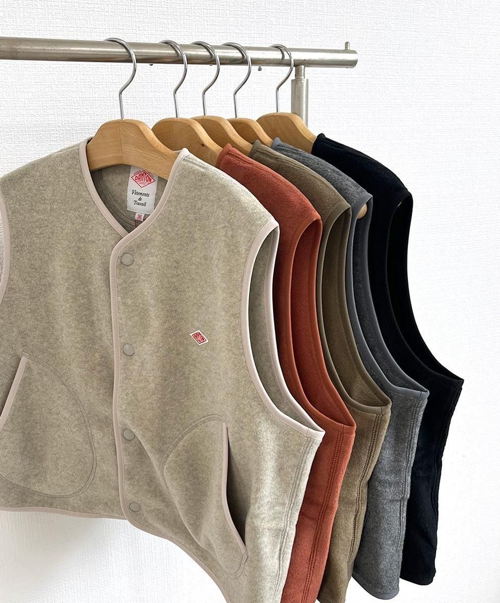 カバーオールをデザインベースにしたフリースベスト。