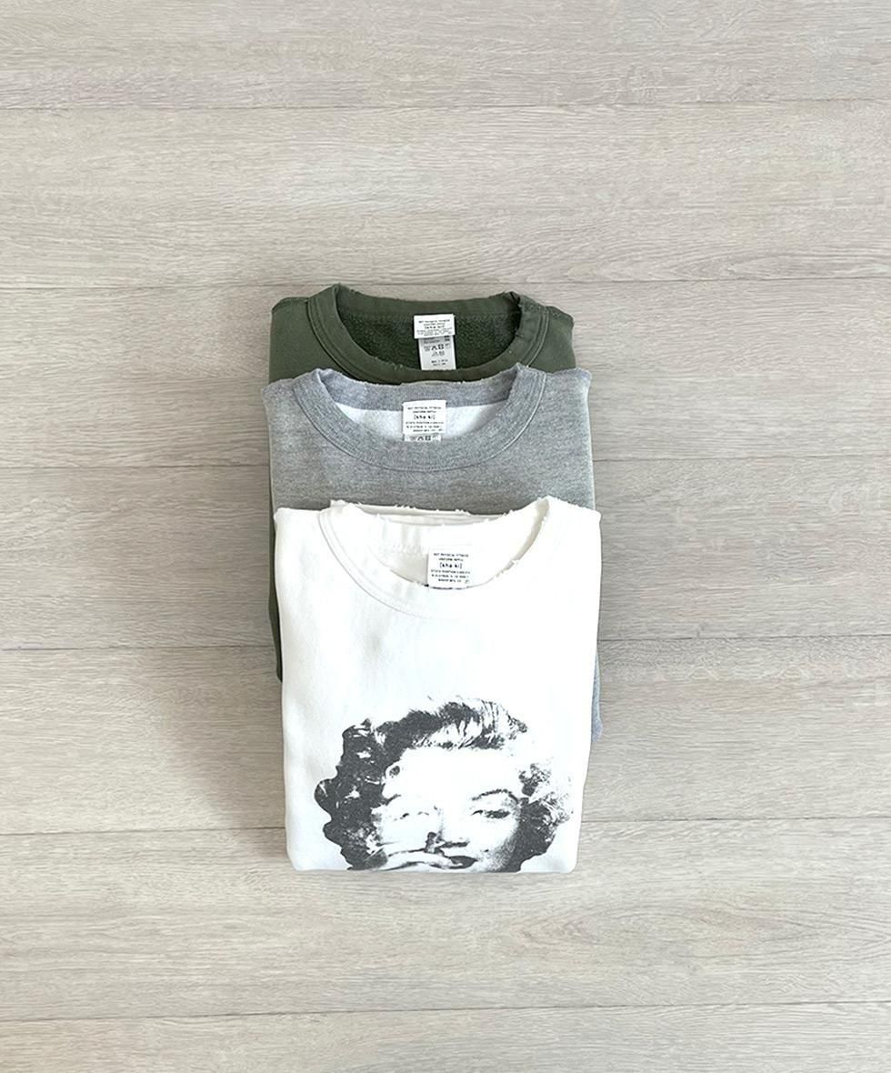 厚手のスウェット素材を使用しつつもハードな洗い加工を施すことで