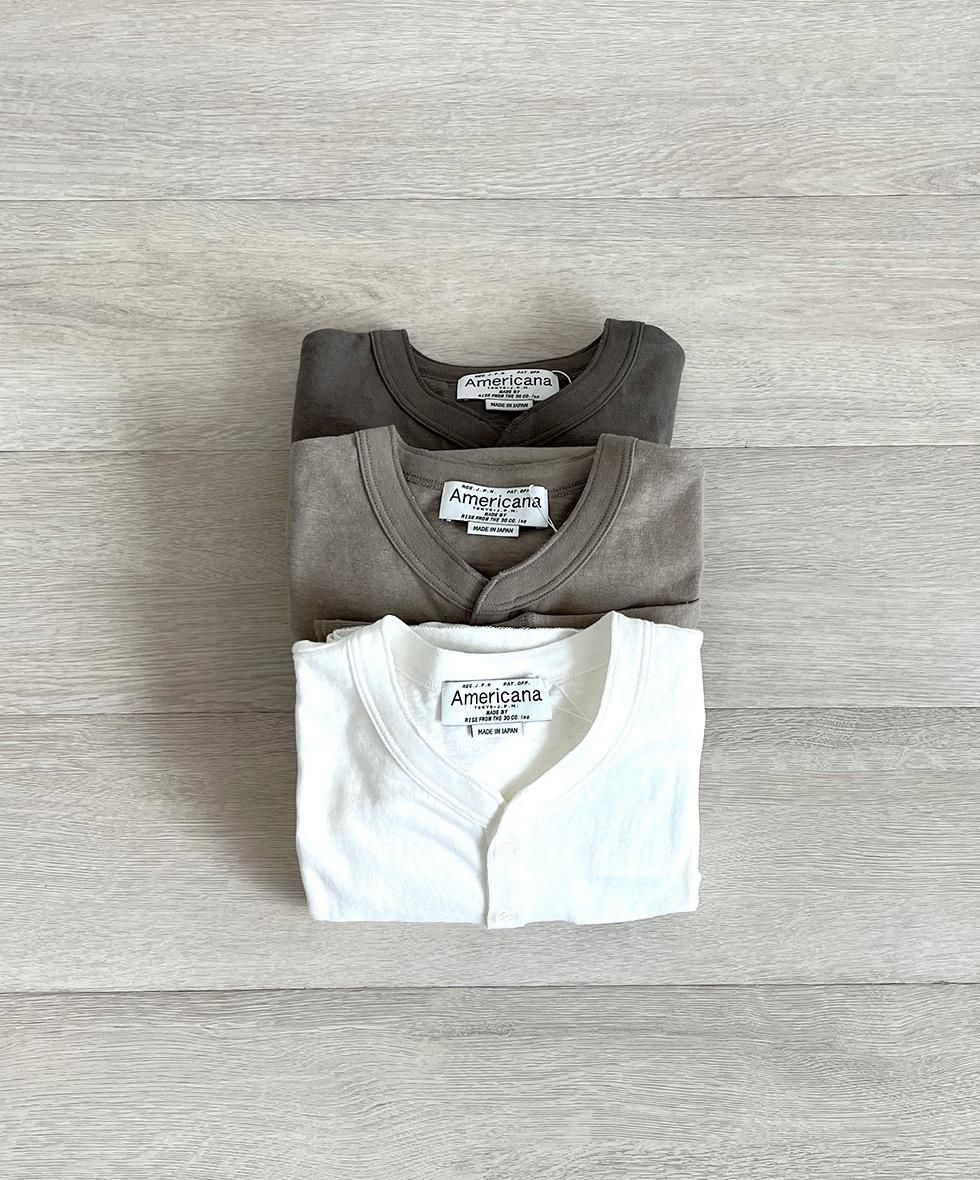 クラシックな雰囲気漂うヘンリーネックロングスリーブTシャツ。